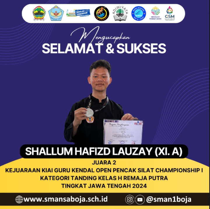 Juara 2 Kejuaraan kiai Guru Kendal Open Pencak Silat Champiomship I Kategori Tanding Kelas H Remaja Putra Tingkat Jawa Tengah 2024